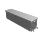 Die stabile Alubox ist mit drei Klappgriffen und integrierten Rollen ausgestattet, wodurch sie sich leicht manövrieren lässt.