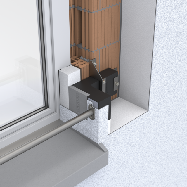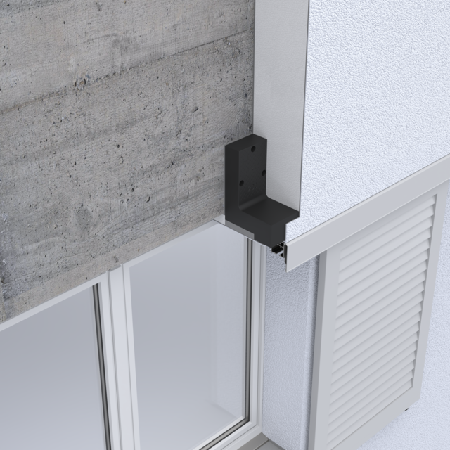 Die Tragwinkel TRA-WIK-ALU-RF / -RL ermöglichen die wärmebrückenfreie Montage von Anbauteilen im Eck- und Fensterbereich von Wärmedämmverbundsystemen, hinterlüfteten Fassaden und Innendämmsystemen.