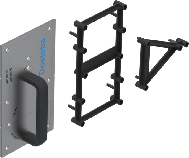 Eine integrierte Aluplatte sorgt für die sichere Befestigung des Anbauteils, während eine Compactplatte (HPL) die Druckverteilung an der Oberfläche optimiert.
